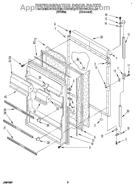 This screw is used to secure the handle end cap to the center of the door. The screw size measures 8-18 x 1/2 inches.