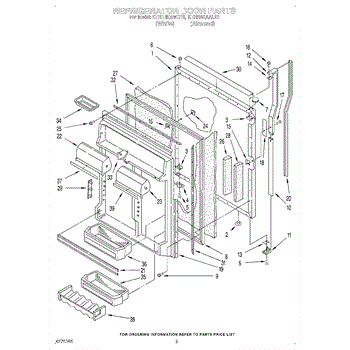 White plastic plug covers unused hinge or handle mounting holes on refrigerator doors. Replace missing, cracked, or discolored plugs for a finished look.