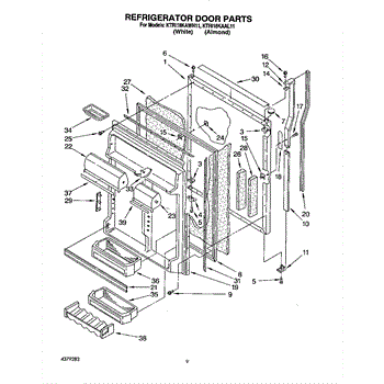 White plastic plug covers unused hinge or handle mounting holes on refrigerator doors. Replace missing, cracked, or discolored plugs for a finished look.