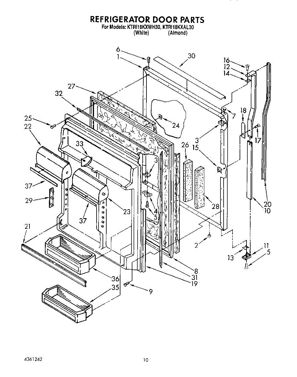 This screw is used to secure the handle end cap to the center of the door. The screw size measures 8-18 x 1/2 inches.
