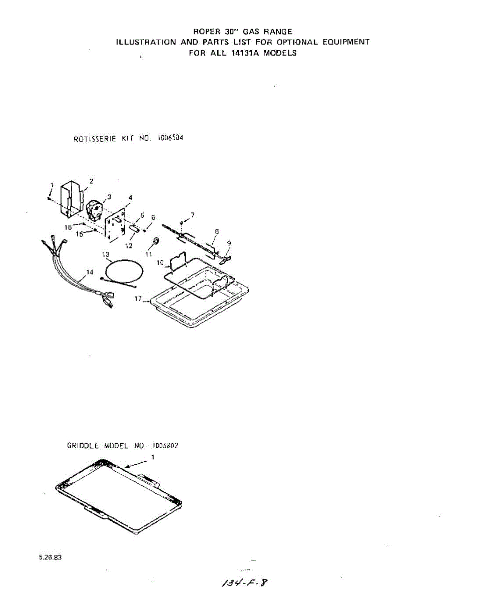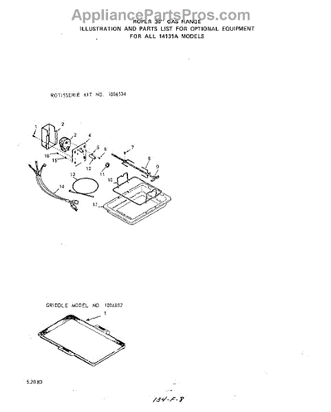 Parts for Whirlpool 1413W1A: 06 - Rotisserie Kit, Griddle Parts
