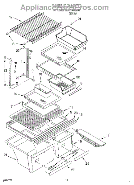 This genuine shelf assembly replaces a damaged or cracked refrigerator cabinet shelf to restore stable storage and keep items organized. It fits original mounting points for a secure, flush installation. What it does: