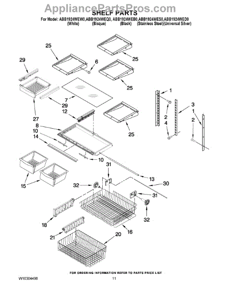 Note: For the right side drawer glide, use part number WP67001053