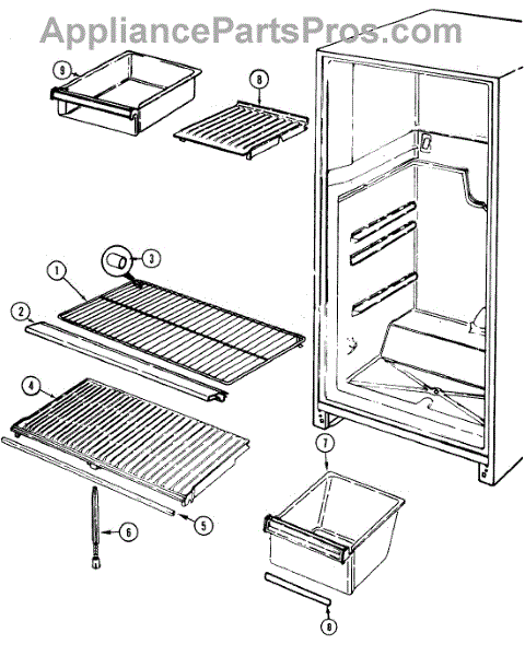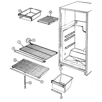 The crisper shelf center support stabilizes the pan cover above the crisper drawers to keep it level under load. Replace a cracked or missing support to restore proper shelf alignment and smooth crisper drawer operation.