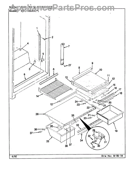 This factory screw secures appliance components to their mounting points. Replace missing, worn, or stripped hardware to restore a tight fit, proper alignment, and quieter operation across the affected assembly.