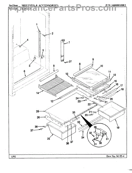 This factory screw secures appliance components to their mounting points. Replace missing, worn, or stripped hardware to restore a tight fit, proper alignment, and quieter operation across the affected assembly.