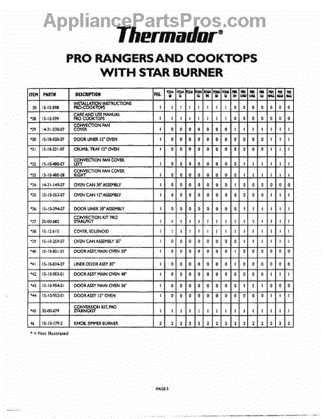 Parts for Thermador PRDS304: 06 - Star Burner Items 30-46 Parts