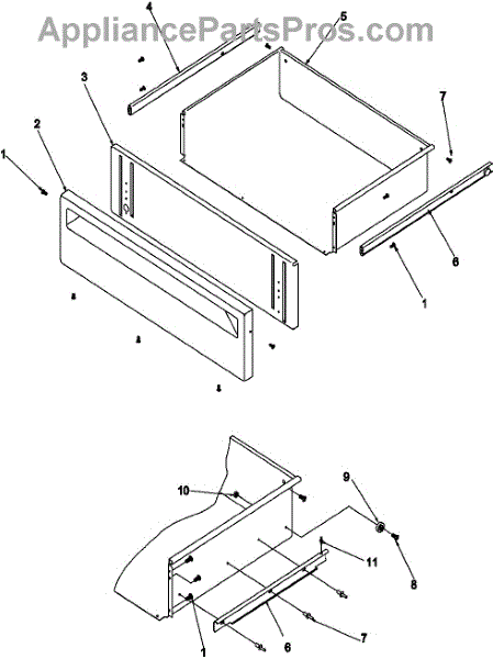 Mounting screw secures panels, brackets, and trim to the appliance frame. Replace if screw is stripped, missing, or damaged to restore secure fastening.