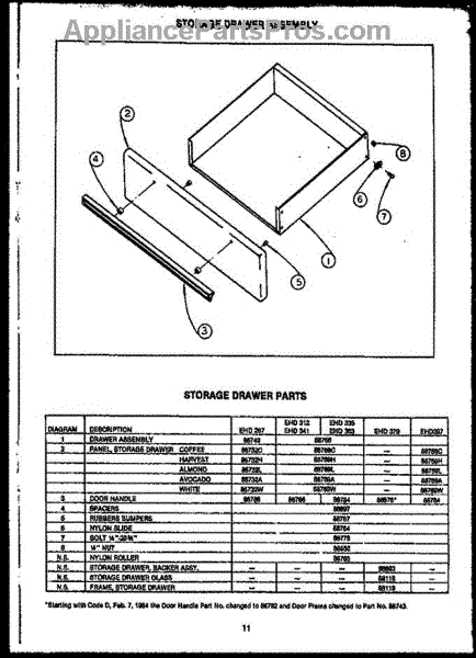 Parts for Amana EHD267: 06 - Storage Drawer Assy Parts