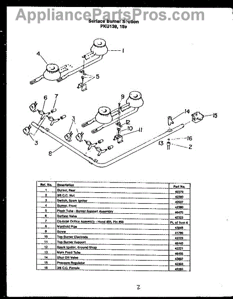 Parts for Amana PKU159: 06 - Surface Burner Section Parts