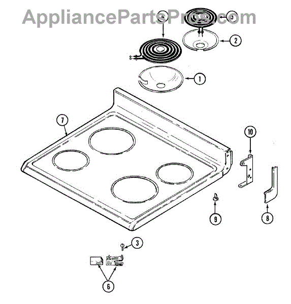 This 6-inch radiant surface element is the heating source for a small burner beneath a glass-ceramic cooktop. Replacing a failed element restores reliable, controllable heat to that cooking zone. What it does: