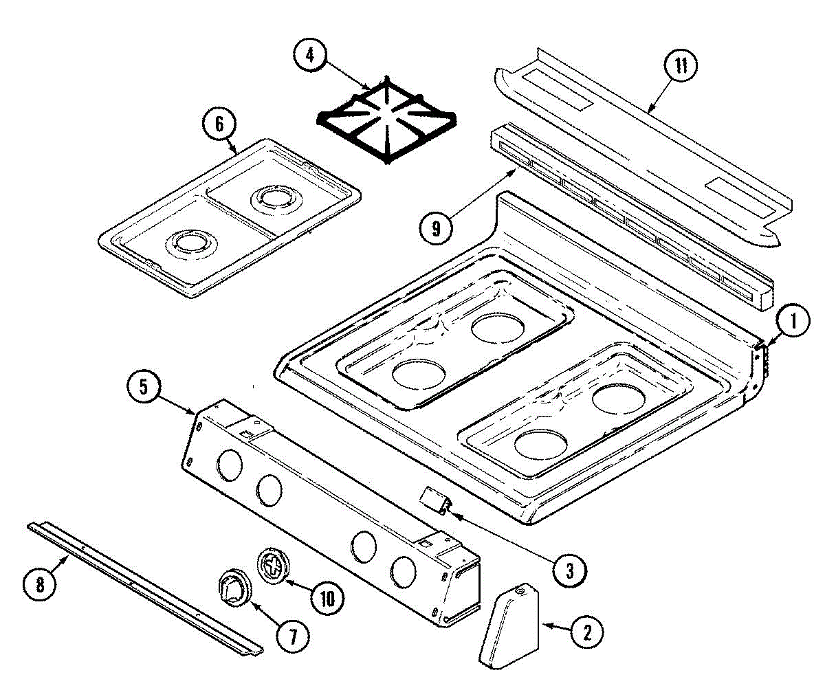 Black control knob for gas range burner valves. Replaces cracked, broken, or missing knobs. Installs on the control panel. Sold individually.