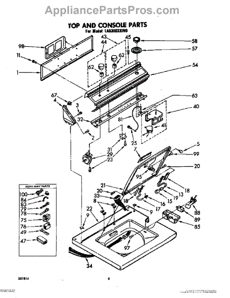 This protective cover for the washer's lid switch area guards the switch and wiring from water, detergent, and snagging inside the top panel, supporting reliable lid-closed detection and long-term safety interlock performance.