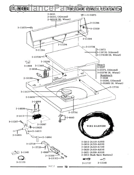 Parts for Maytag A209S: 06 - Top Cover, Console & Lid Switch Parts