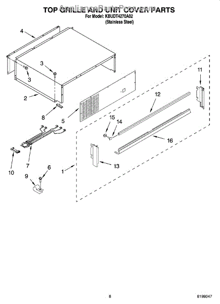 This screw is used to secure the handle end cap to the center of the door. The screw size measures 8-18 x 1/2 inches.