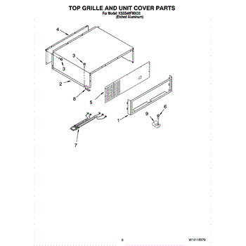 This screw is used to secure the handle end cap to the center of the door. The screw size measures 8-18 x 1/2 inches.