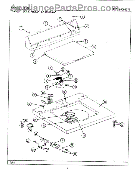 This factory screw secures appliance components to their mounting points. Replace missing, worn, or stripped hardware to restore a tight fit, proper alignment, and quieter operation across the affected assembly.