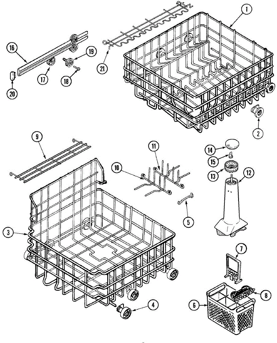 Replacement silverware basket for dishwashers. Holds and organizes utensils during wash cycles. Replace if cracked, broken, or falling apart.