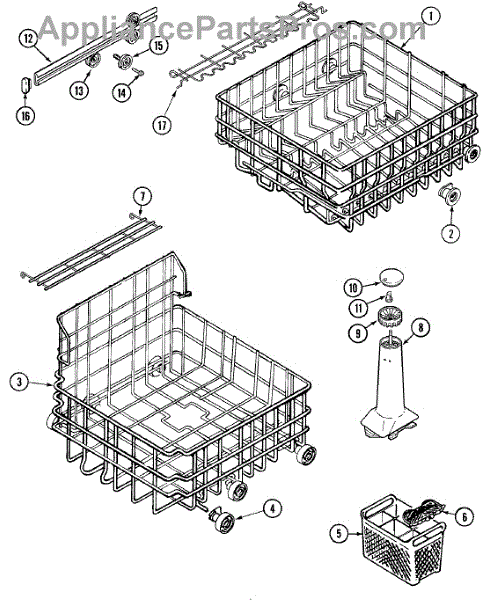 This is an upper dish rack assembly for dishwashers. It is located in the top section of the dishwasher and is meant to ensure dishes stay in place while the dishwasher is running. The dish rack assembly is durable but can experience damage, stains, or other issues. This may make it unsuitable for holding dishes in the appliance. If the part is damaged or malfunctioning, it should be replaced with a new part.This is a simple replacement that takes only a few minutes to complete. First, open up the dishwasher. Remove the bottom rack if desired to create more room to work with the upper dish rack assembly. Take a small flathead screwdriver and use it to release the retaining tabs located on the stop clips. Remove the stop clips and the old dish rack assembly will slide out. Align the new assembly and slide it into place before reassembling other small parts.This upper dish rack assembly is used as an authentic OEM replacement part for dishwashers manufactured by Maytag, Norge, Jenn Air, Admiral, Amana, Crosley, and Magic Chef. The part is sold as an individual component.