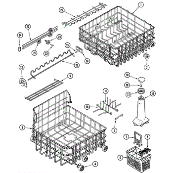 You should replace the silverware basket assembly if it becomes cracked, warped, or damaged. Causes of a bad silverware basket assembly can include regular wear and tear from repeated use, damage from overloading or mishandling, and exposure to high temperatures.