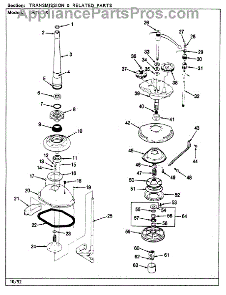 The Thrust Bearing Kit is an OEM part for Whirlpool washing machines. This kit is essential for the proper operation of the washer's transmission system, allowing the drive system to engage smoothly and efficiently.