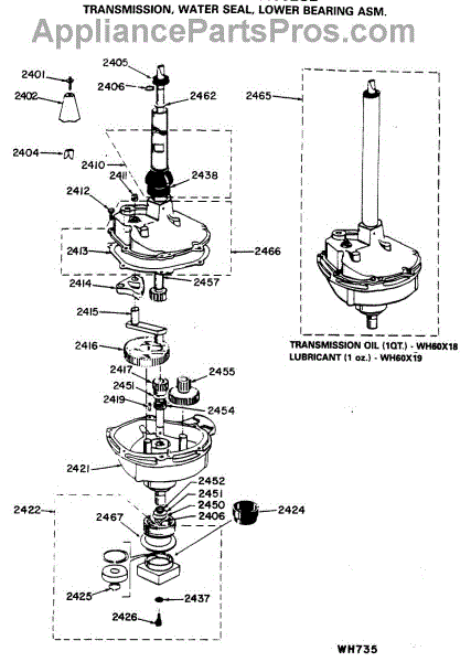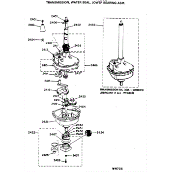 Parts for Ge WSM2400LCB: 06 - Transmission, Water Seal, Lower Bearing Asm. Parts
