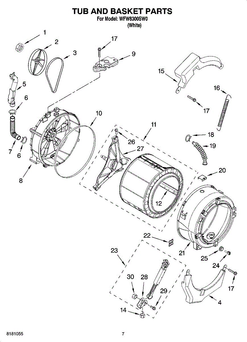 Service tub gasket that creates a watertight seal between the washer tub and cabinet. Replaces a worn or damaged seal to help stop leaks and limit water damage around the appliance. What it does: