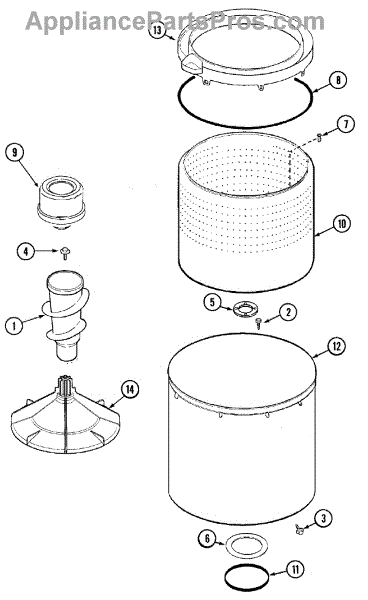 • Seals the gap between the basket/tub and the center drive shaft to help prevent water from leaking into the motor/tub area