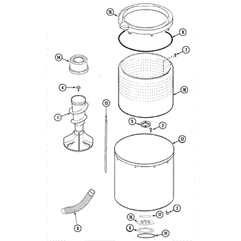 This tub-to-pump hose connects the washer's outer tub to the drain pump, carrying water out of the machine during the drain cycle. Replacing a cracked or clogged hose can help stop leaks and restore consistent draining.