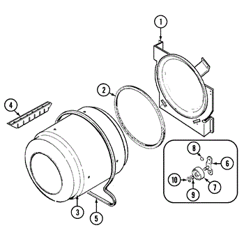 Right hand side. Used most Admiral, Crosley, Norge, and Magic Chef dryers. Includes glide and felt pad.