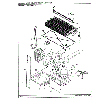 Plastic defrost pan. Evaporator pan hangs from side rails and rests on compressor.