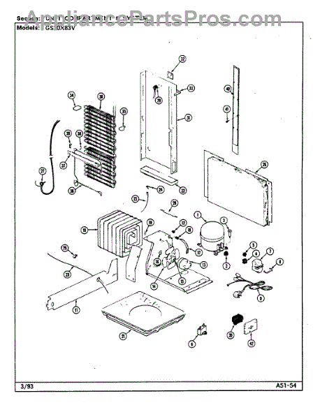 Plastic defrost pan. Evaporator pan hangs from side rails and rests on compressor.