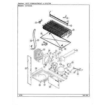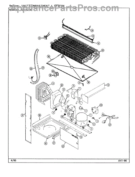 Plastic defrost pan. Evaporator pan hangs from side rails and rests on compressor.