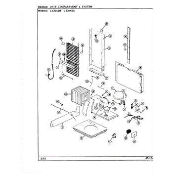 Plastic defrost pan. Evaporator pan hangs from side rails and rests on compressor.