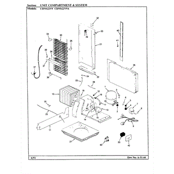 Plastic defrost pan. Evaporator pan hangs from side rails and rests on compressor.
