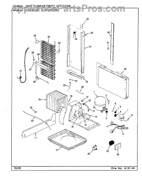 Plastic defrost pan. Evaporator pan hangs from side rails and rests on compressor.