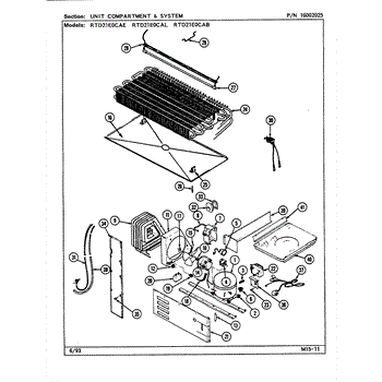 Plastic defrost pan. Evaporator pan hangs from side rails and rests on compressor.