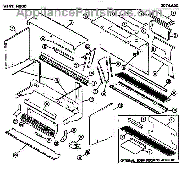 Parts for Amana 3074.A00: 06 - Vent Hood Parts