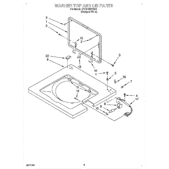 The Washer Lid Screw is an OEM part for Whirlpool washing machines. This 6-32 x .340 screw secures the washer lid to the hinge assembly, ensuring the lid opens and closes smoothly and stays securely in place during operation.