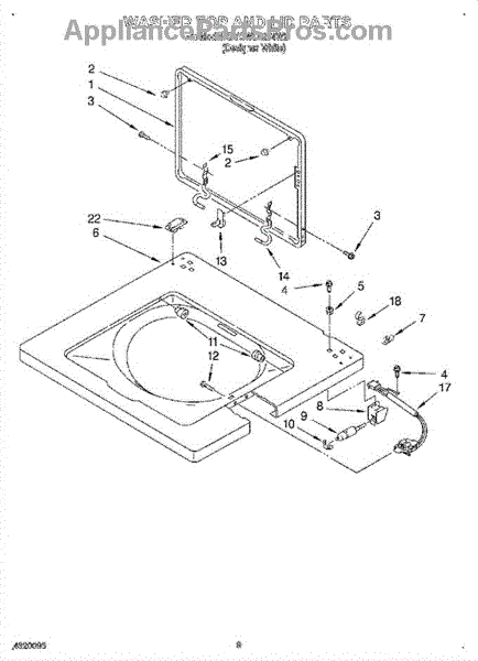 This lid retainer assembly secures and aligns the washer lid to the cabinet, restoring proper lid engagement and reducing movement or rattling during use. It helps the lid close and latch reliably for normal operation. What it does: