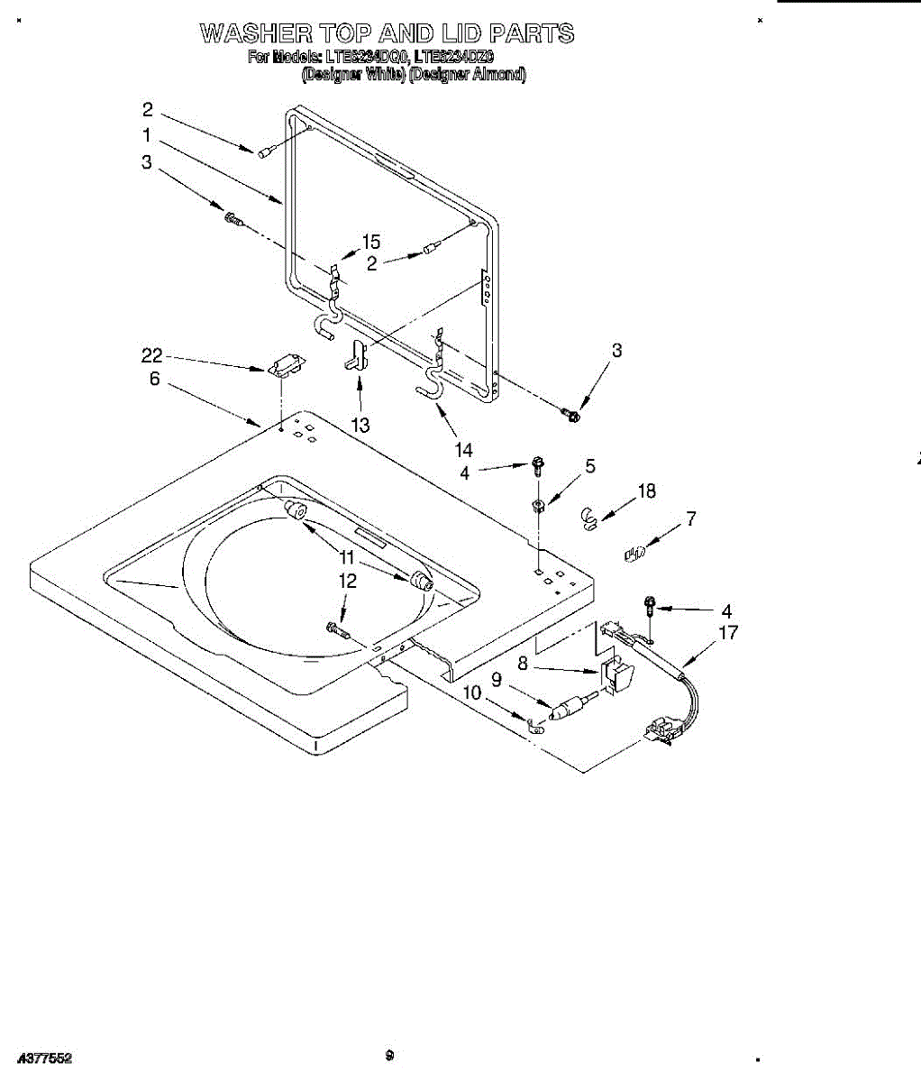 Parts for Whirlpool LTE6234DQ0: 06 - Washer Top And Lid Parts