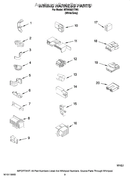 Parts for Maytag MTW5821TW0: 06 - Wiring Harness Parts