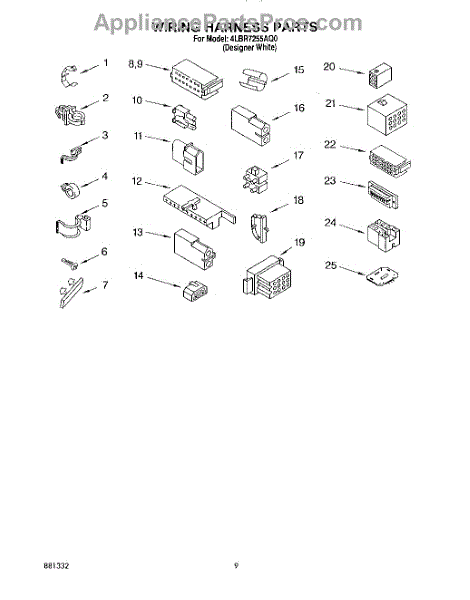 Parts for Whirlpool 4LBR7255AQ0: 06 - Wiring Harness Parts