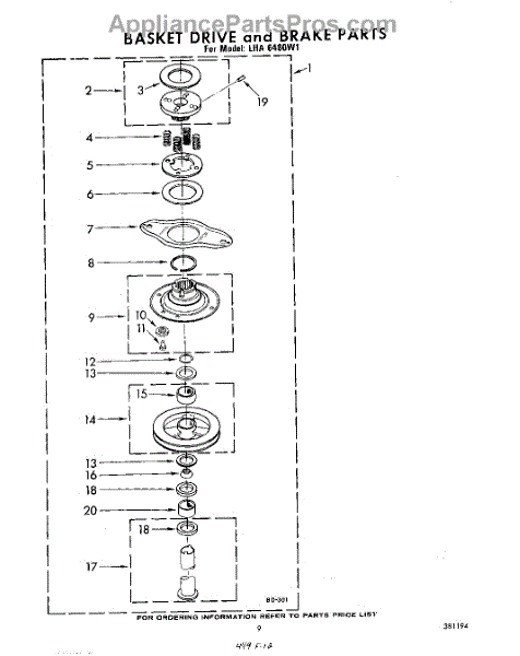 Parts for Whirlpool LHA6480W1: 07 - Basket Drive And Brake Parts