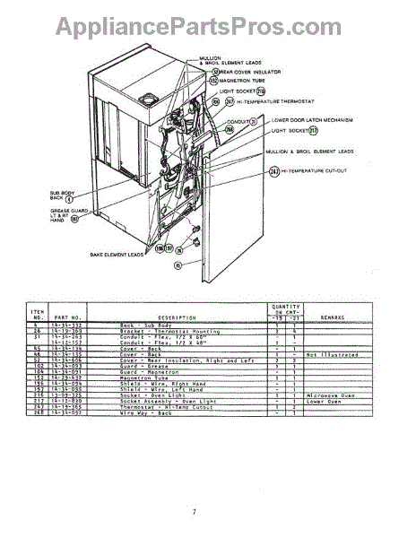 Parts for Thermador CMT-21 SERVICE CODE J & UP: 07 - Body Parts