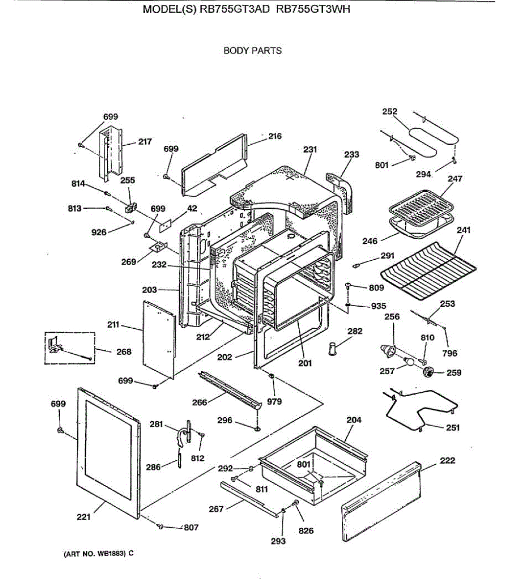 Parts for Ge RB755GT3WH: 07 - Body Parts