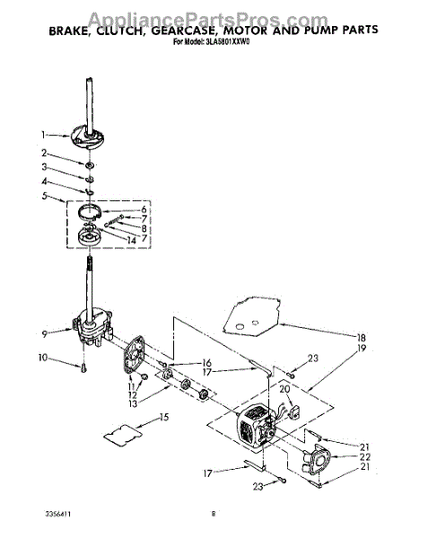 Fix a washer that won't spin or agitate with grinding noises. This transmission gearcase assembly transfers motor power to drive the wash basket.