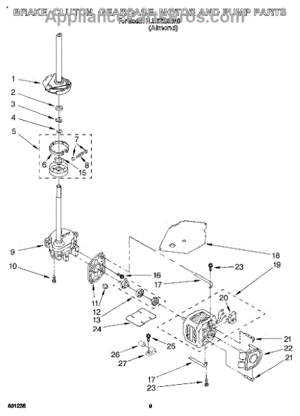 Parts for Whirlpool 7LSR7233BN0: 07 - Brake, Clutch, Gearcase, Motor And Pump Parts
