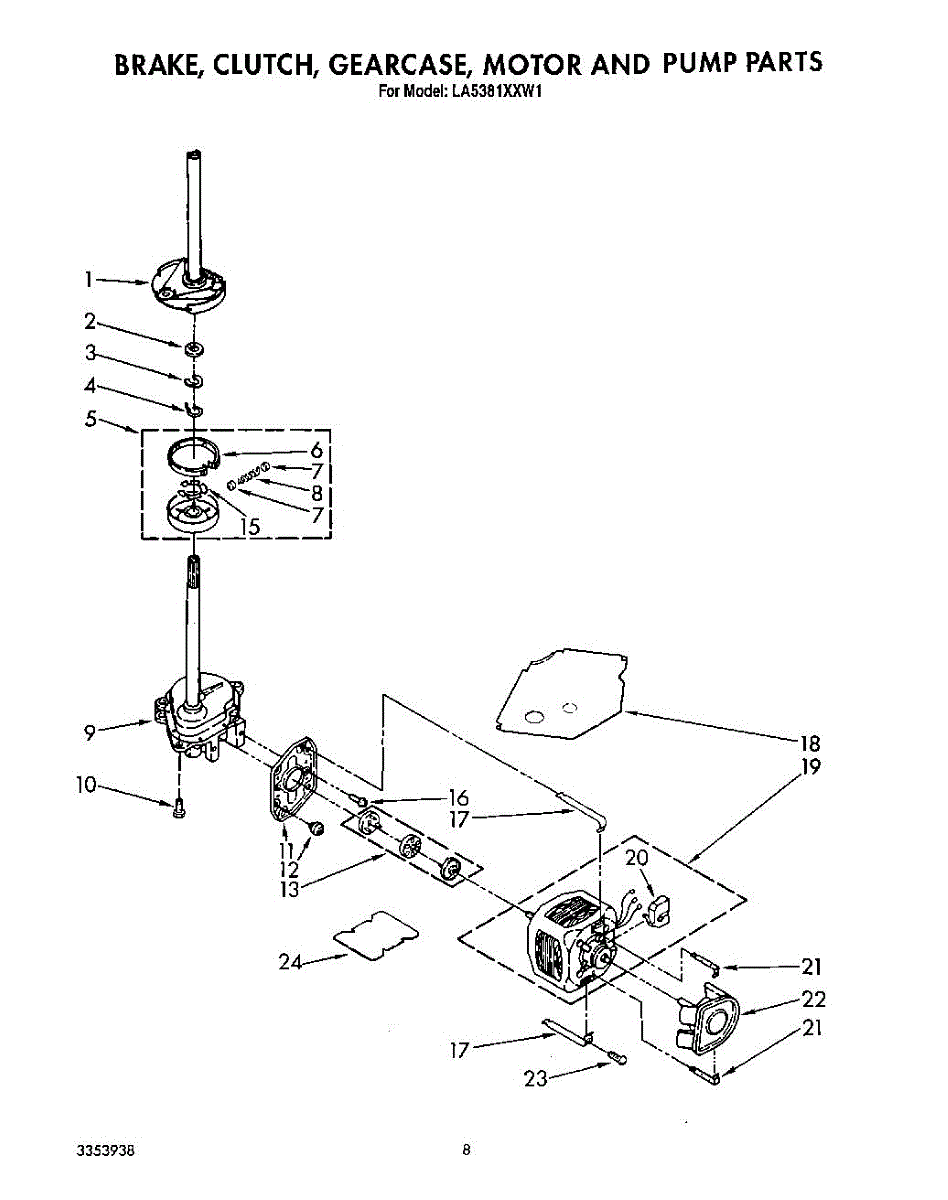 Parts for Whirlpool LA5381XXM1: 07 - Brake, Clutch, Gearcase, Motor And Pump Parts