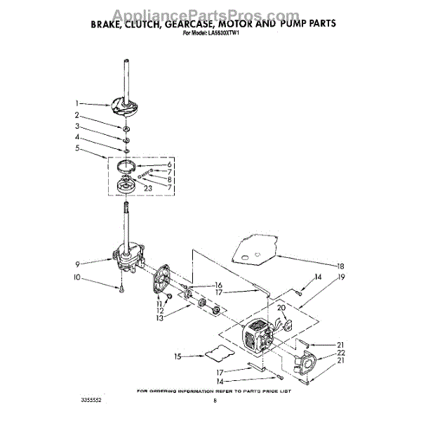 Parts for Whirlpool LA5530XTN1: 07 - Brake, Clutch, Gearcase, Motor And Pump Parts